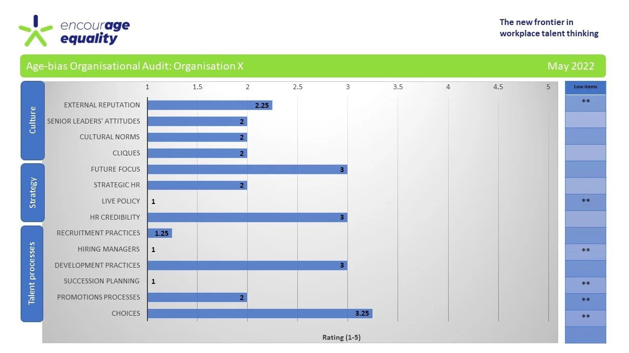 Assessment of culture, strategy and HR processes to identify areas of embedded ageism